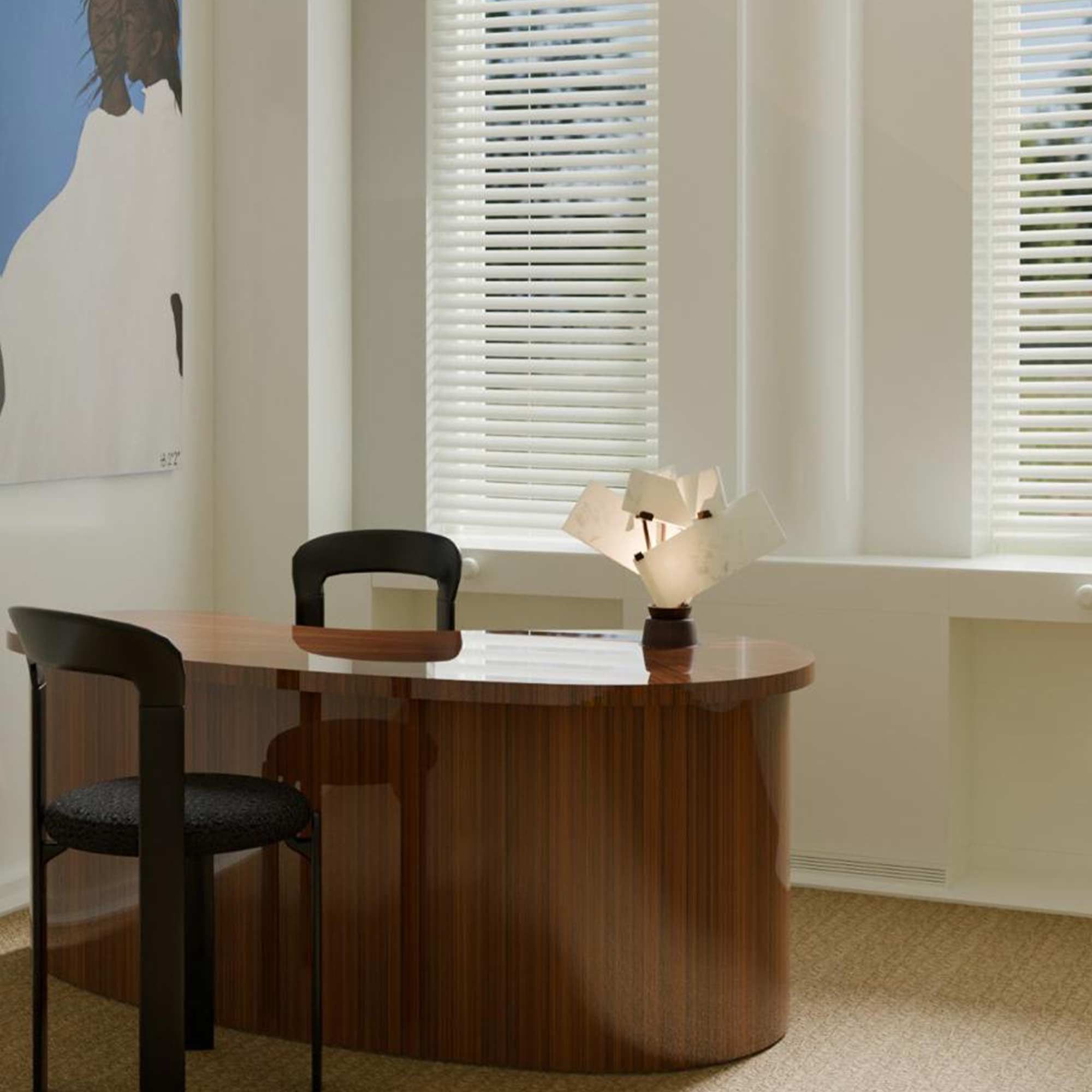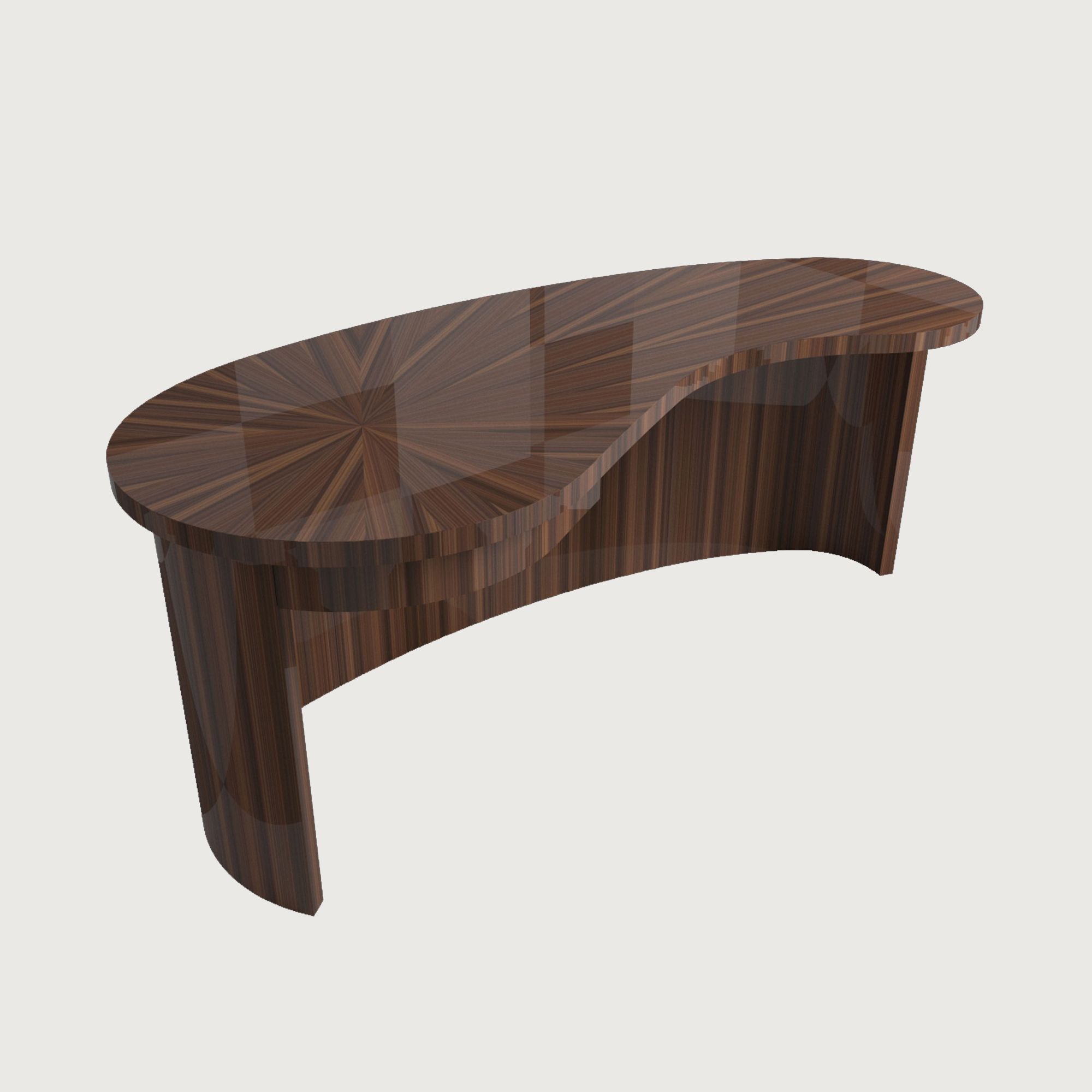 Дизайнер Мария Цыпляева создала письменный стол LUV, отличающийся практичностью, комфортом и выразительностью формы, подчёркивающей уверенность и высокий статус владельца. Стол привлекает внимание скульптурностью силуэта и эффектной отделкой с использованием экзотического шпона.