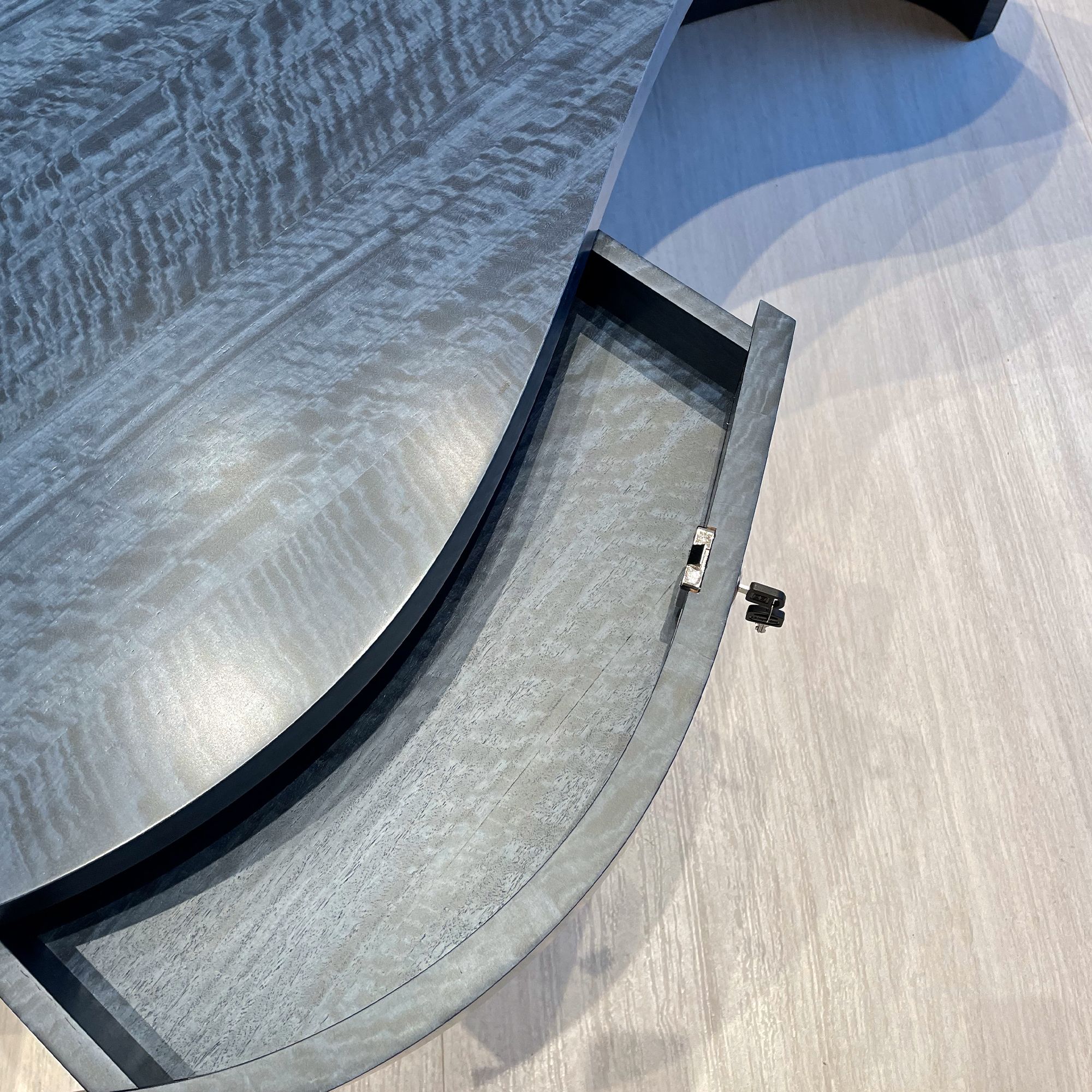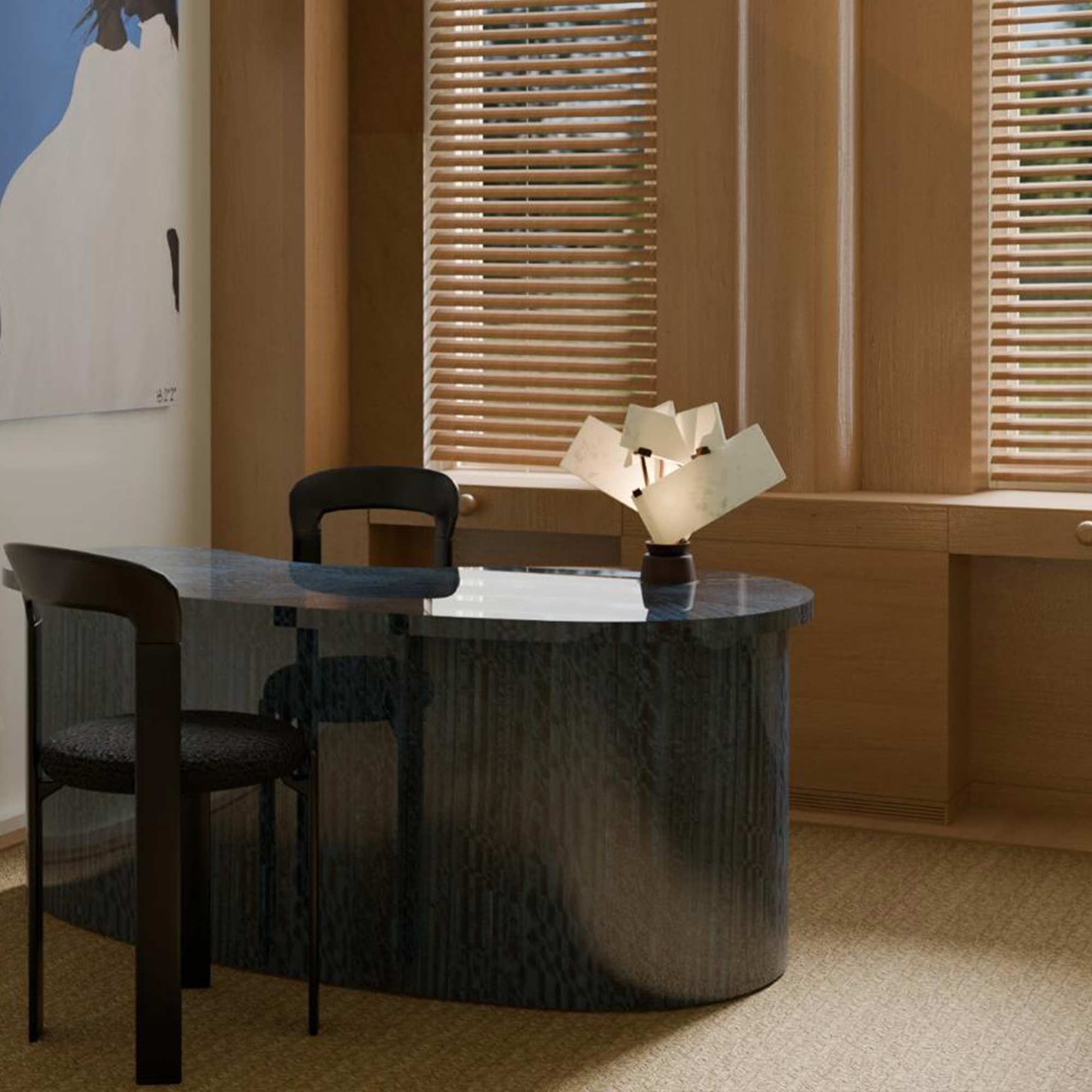 Дизайнер Мария Цыпляева создала письменный стол LUV, отличающийся практичностью, комфортом и выразительностью формы, подчёркивающей уверенность и высокий статус владельца. Стол привлекает внимание скульптурностью силуэта и эффектной отделкой с использованием экзотического шпона.