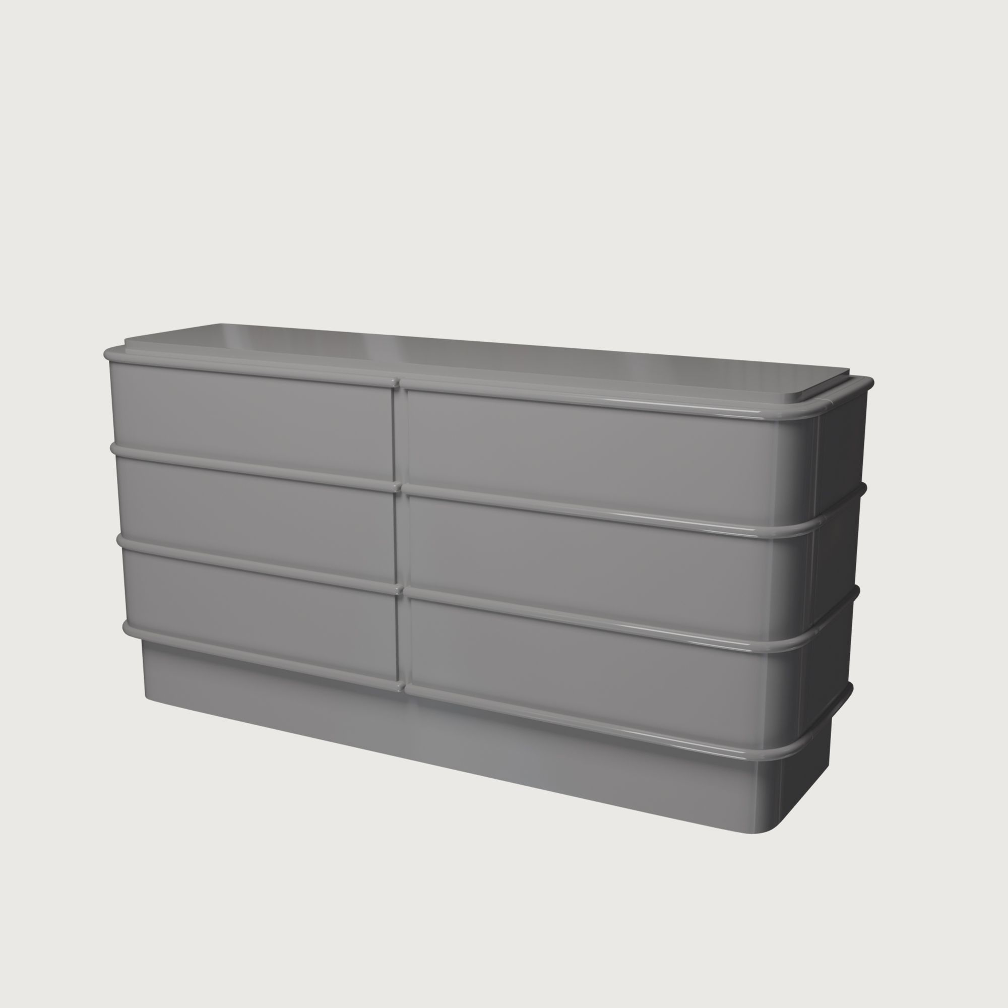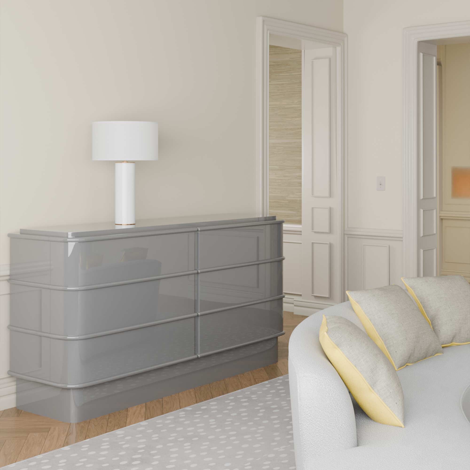 Изделие сочетает превосходную эргономику с выразительным эстетическим решением: шесть вместительных ящиков, плавные, обтекаемые линии и эффектное сочетание материалов. В глянцевом исполнении комод напоминает роскошный и притягательный концертный рояль, а в варианте из мрамора он выглядит монументально и эксклюзивно.