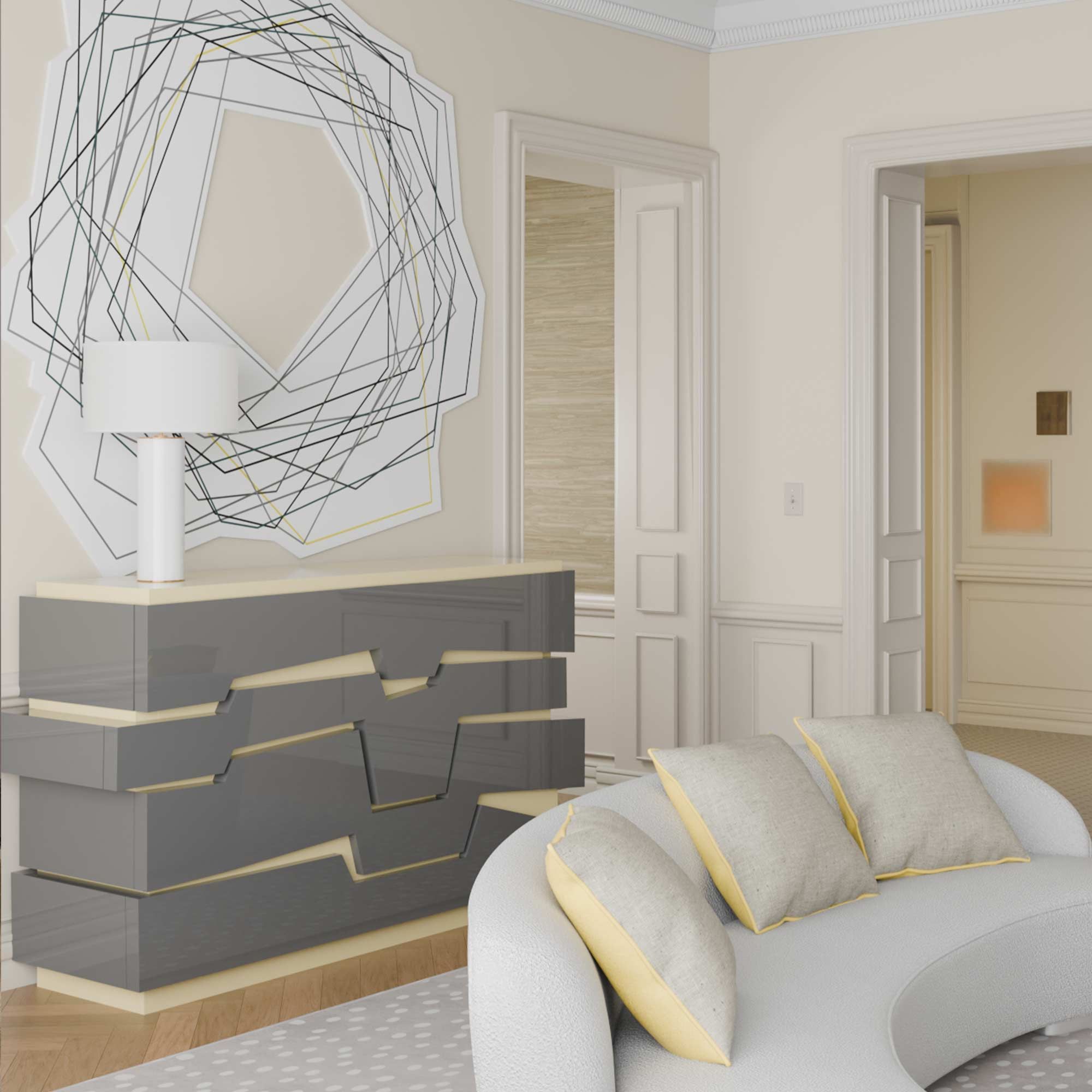 Комод ROCK выпускается в различных глянцевых отделах от серого- желтого до насыщенного бордо. Смелость геометрии и цветов делают этот предмет идеальным для современных интерьеров с характером.