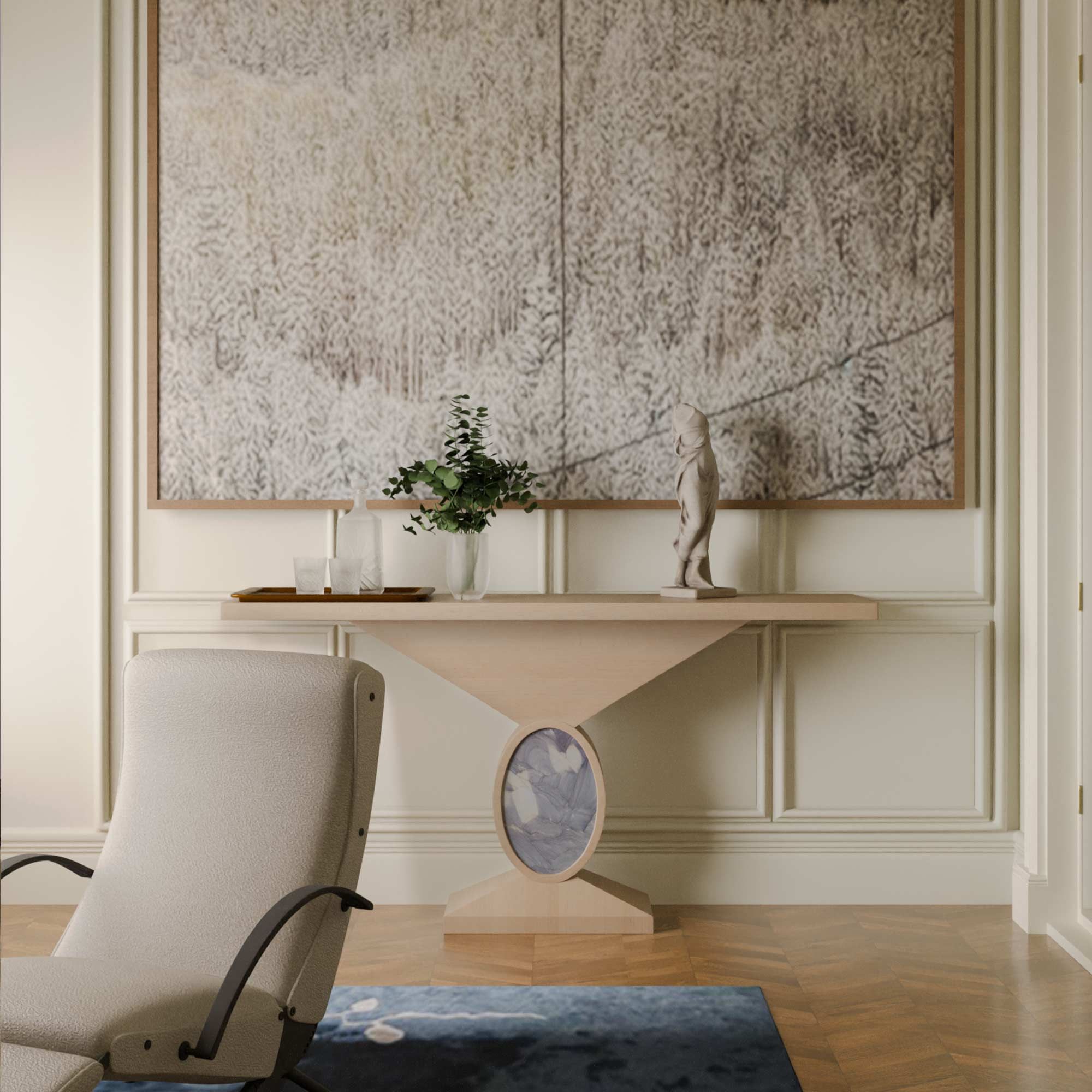 Эта консоль отлично подойдёт как для современных, так и для классических интерьеров, добавляя пространству элегантности и художественной завершённости. RADO — это не просто консоль, а функциональный арт-объект с сильной визуальной харизмой.