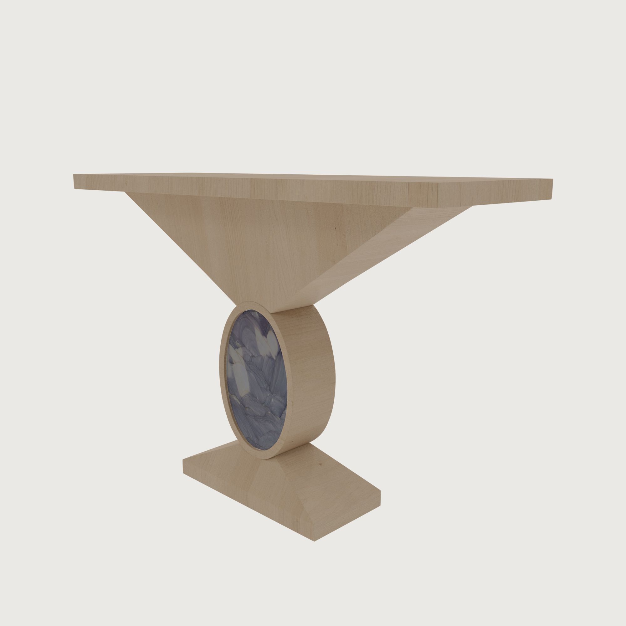 Консоль RADO — это произведение декоративного искусства, в котором строгая геометрия сочетается с утончённой роскошью натуральных материалов. Эффектная V-образная конструкция основания символизирует равновесие и силу, а овальная вставка из натурального камня становится своеобразной брошью — выразительным акцентом и центральным элементом композиции.