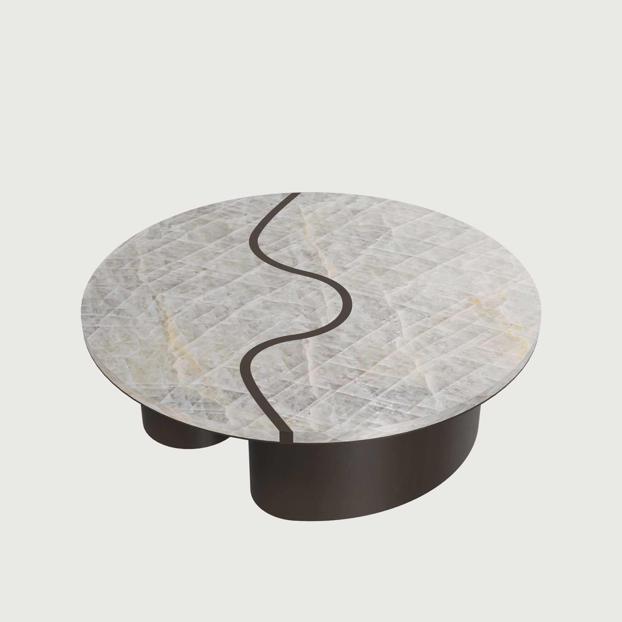 MILLORY — это непросто столик, а подлинное произведение искусства. Особая линия, проходящая между двумя элементами камня, приглашает каждого зрителя к творческому осмыслению авторского замысла. В зависимости от воображения, в ней можно увидеть изгиб реки, очертания человеческого профиля или даже облик младенца в утробе матери. Именно эта уникальная особенность делает изделие особенным и запоминающимся.